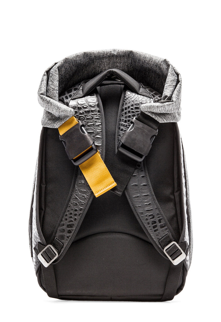 Cote & CielWATER-RESISTANT COATED POLYESTER BACKPACK IN BASALT GREY WITH MATTE GUNMETAL HARDWARE. ADJUSTABLE SHOULDER STRAPS, CALF LEATHER AT PRESSRELEASE BUCKLES WITH EXTENDED FOLD-DOWN TOP. ZIP CLOSURE AT TOP ON FRONT COMPARTMENT WITH ZIP POCKET INTERIOR. TWO-WAY ZIP CLOSURE AT MAIN COMPARTMENT WITH LAPTOP POCKET, ZIP POCKET, AND PATCH POCKETS. FITS 13" TO 15" LAPTOP.